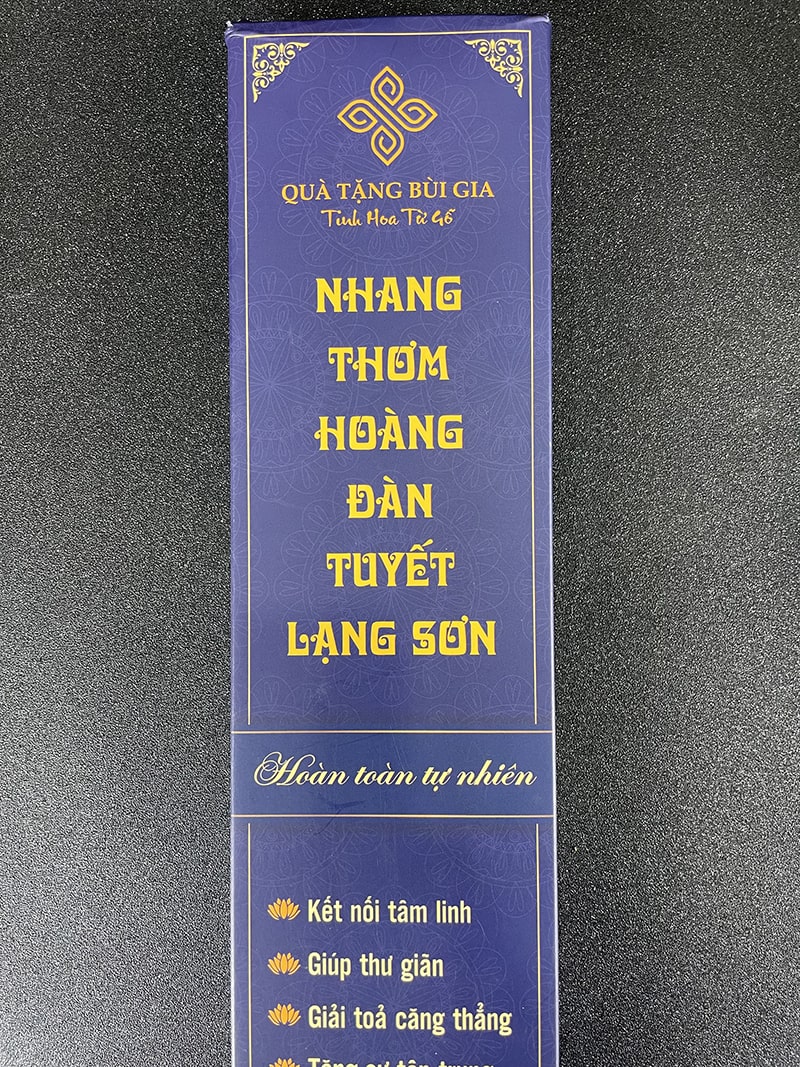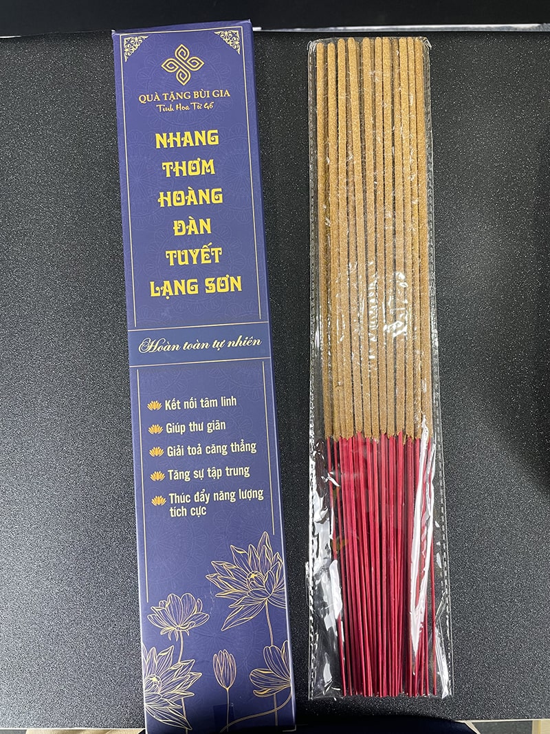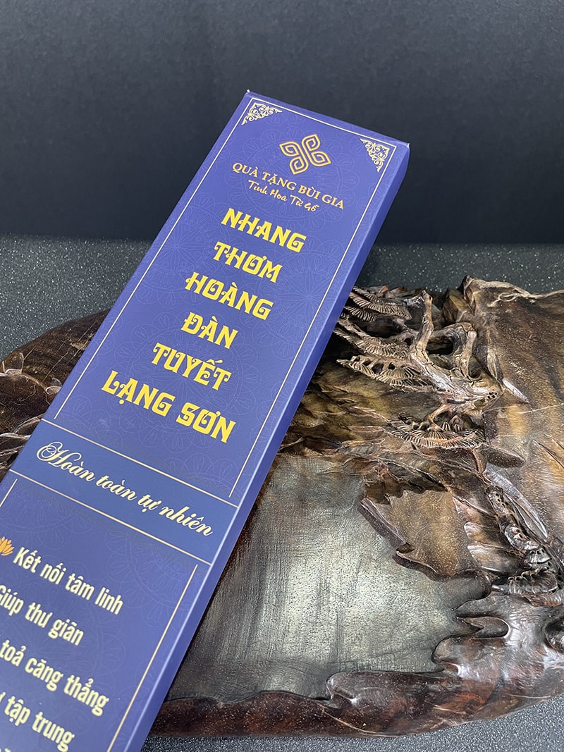 Điểm đặc biệt của nhang Hoàng Đàn chính là ánh tuyết kim phủ trên từng que nhang – dấu ấn quý giá của dòng gỗ Hoàng đàn cao cấp, thể hiện sự tinh túy và trường tồn. Mỗi nén nhang không chỉ là lễ vật dâng lên tổ tiên mà còn là sợi dây tâm linh, giúp kết nối sâu sắc giữa con cháu với cội nguồn, mang lại cảm giác an lành và phúc khí dồi dào.