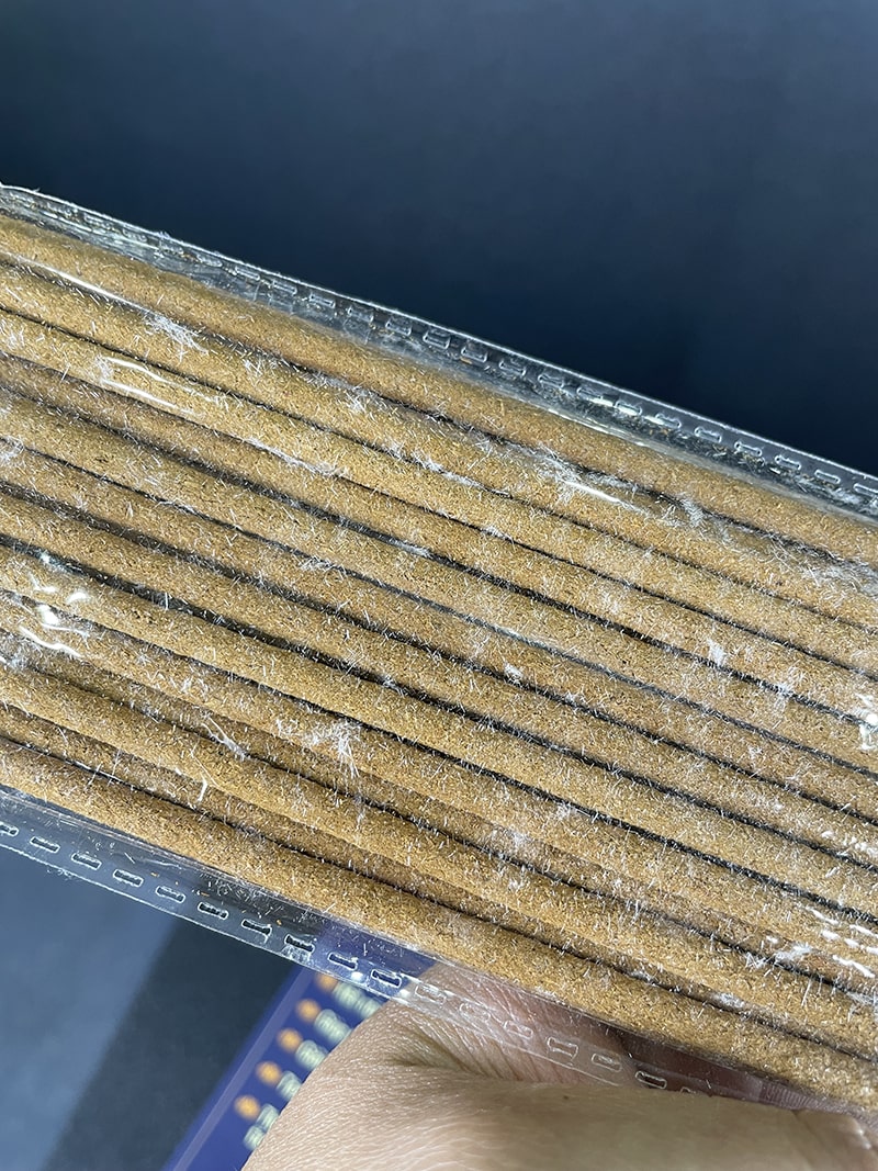 - Thẻ nhang có sự kết tuyết thể hiện phẩm chất quý giá của phôi gỗ (thi thoảng có những thẻ nhang chưa kết đủ tuyết do yếu tố thời tiết)
